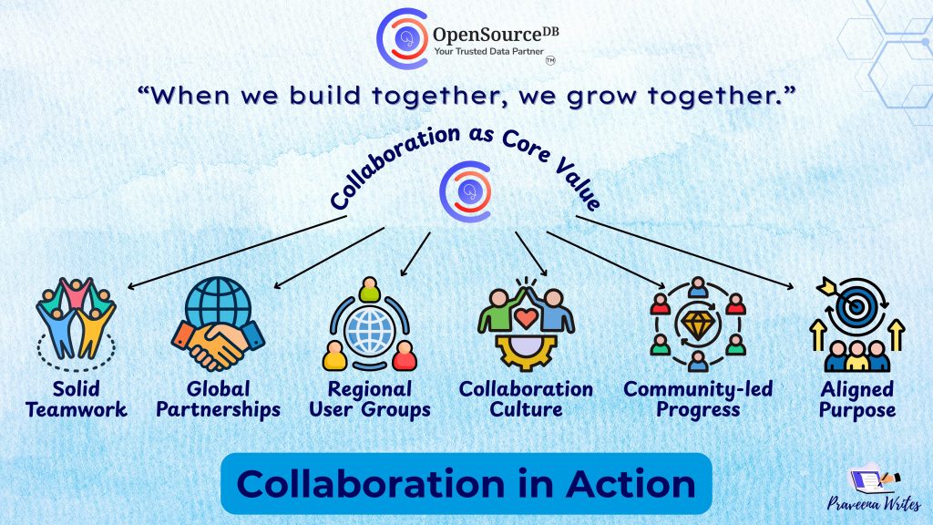 At OpenSource DB (OSDB), collaboration is not just a guiding value, it’s the foundation of everything we build. Whether through internal teamwork, partnerships with PostgreSQL innovators, or initiatives with community groups like Postgres Women India (PWI), we believe meaningful progress happens when people unite around a shared purpose.