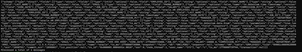 oracle.HR.EMPLOYEEShas messages- Sink connector consumer group is active