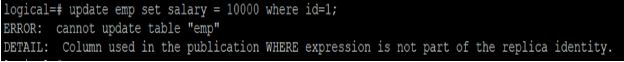 logical=# create publication row_filter_pub for table emp where (salary >= 100000);