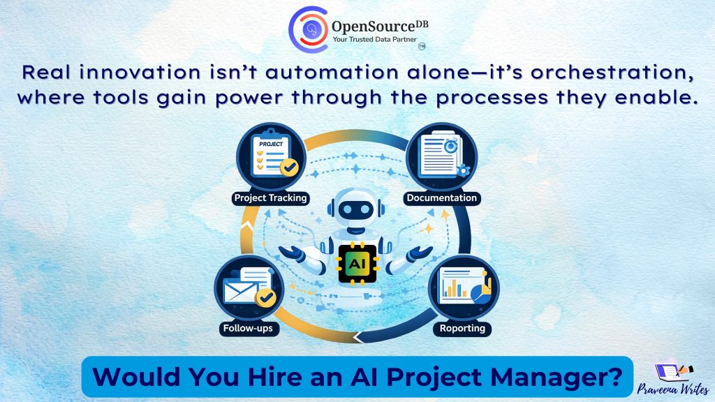 Today, project tracking, documentation, follow-ups, and reporting are no longer separate activities. They are outcomes of the same continuous flow of work, orchestrated by AI.